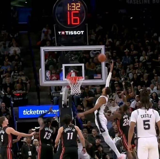 阿德巴约底线突破,一步过掉了文班